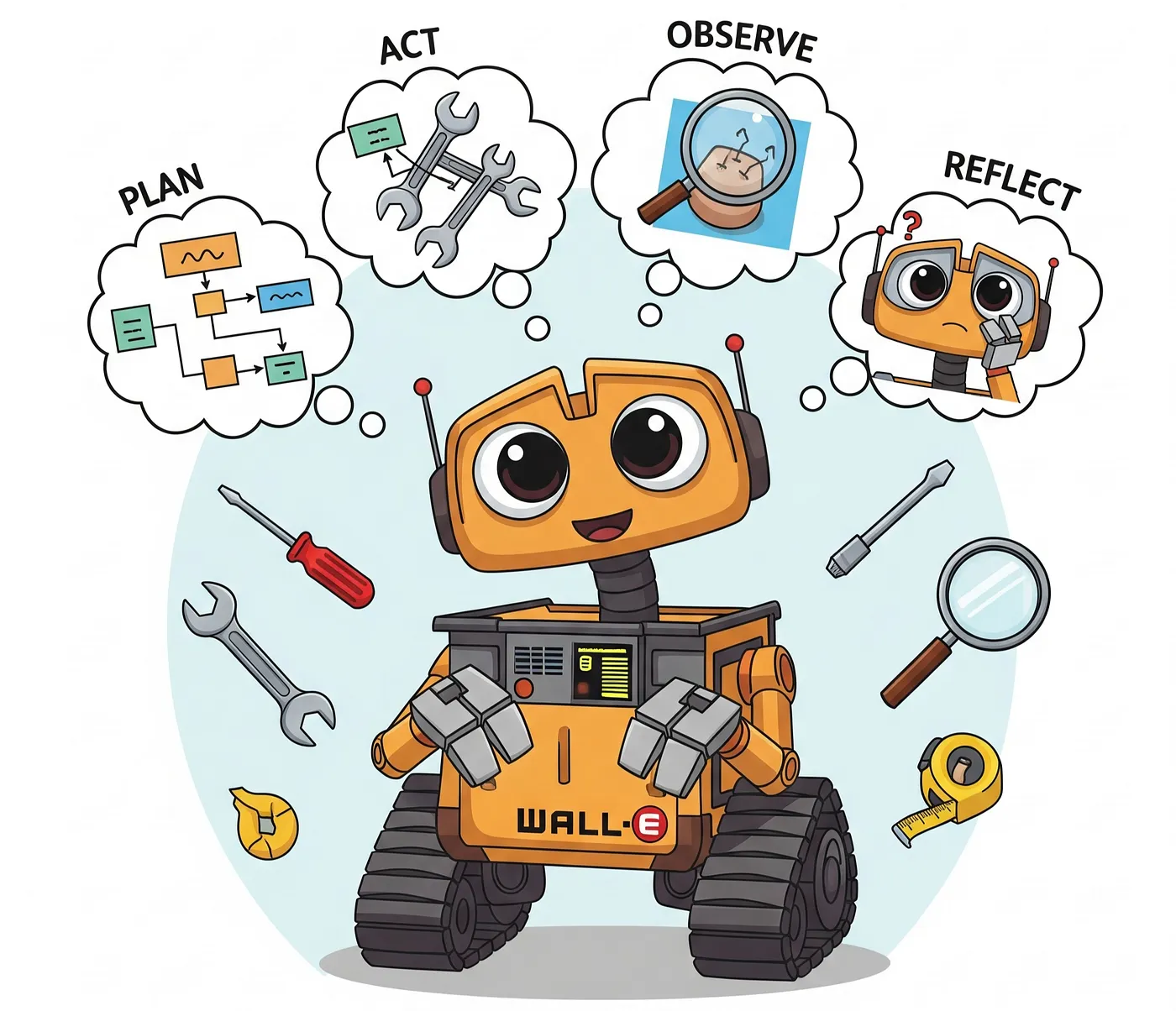 - Reasoning: Plan -> Act -> Observe -> Reflect.